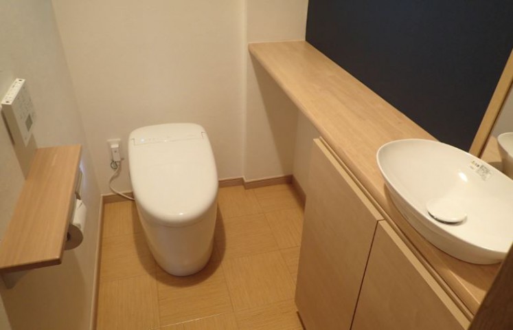 D様のご要望は、見た目もきれいでお掃除も楽、快適な空間になるようなトイレリフォームにしたいとのことで、手洗いカウンターも含めたトイレ空間全体のリフォームをご提案させていただきました。