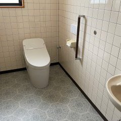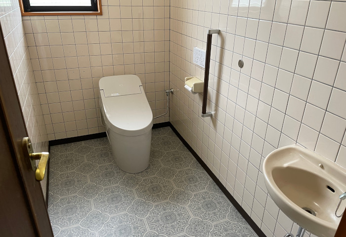 もともと広いお手洗いでしたが、小便器の撤去、ロータイプのトイレへの交換で、さらにスペースが広くなりました。