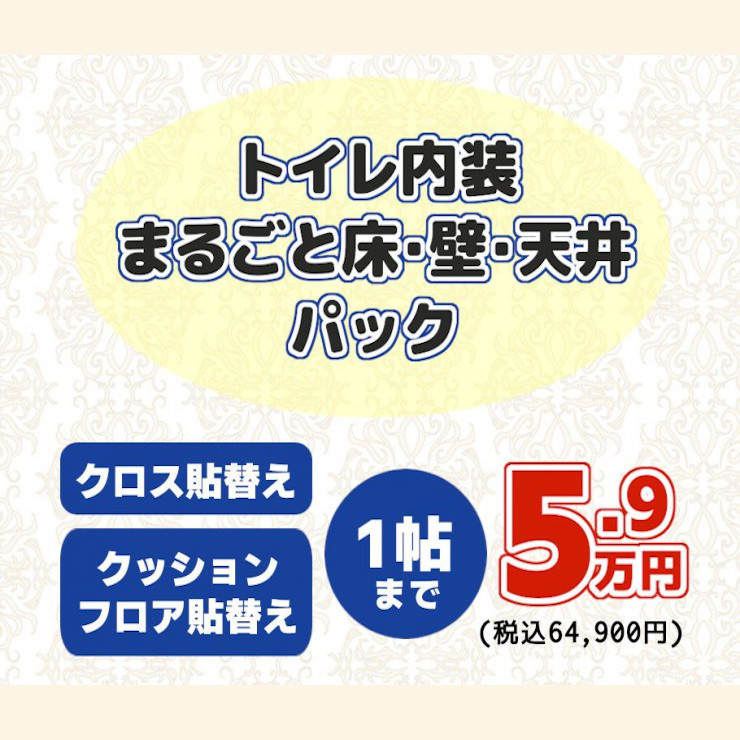 床(クッションフロア)、壁(クロス)、天井(クロス)まるごと貼替えのお得なパック価格です!