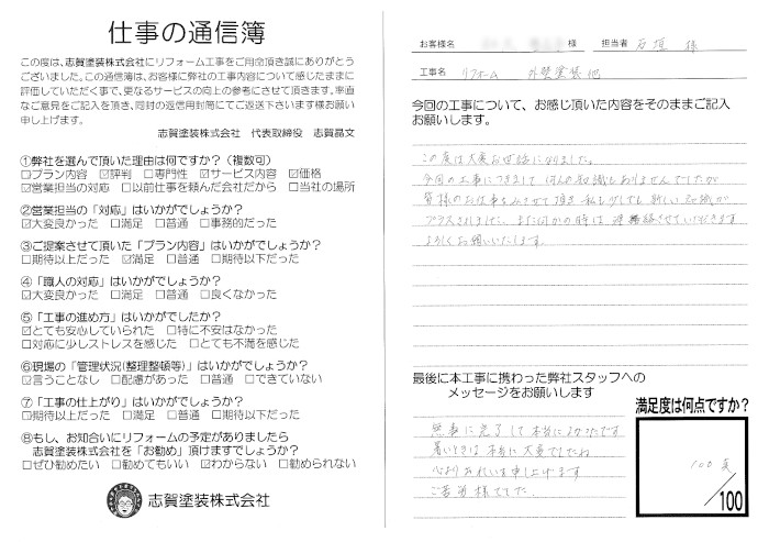 今回の工事につきまして何の知識もありませんでしたが、皆様のお仕事を見させて頂き私も少しでも新しい知識がプラスされました。