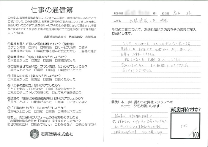 見積りも細部まで記載されており、安心して仕事をお願いできました。