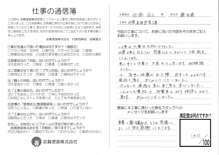 外壁工事の仕上りが想像以上にきれいで大変満足しております。