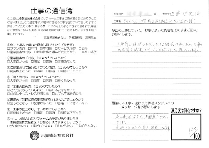 工事前に説明いただいた(工期や仕事の流れ、仕事の内容等)誠実にやっていただいたと思っています。