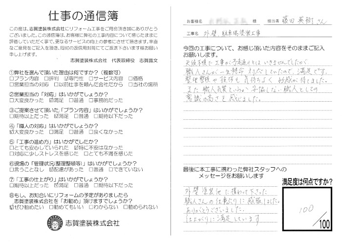 外壁塗装他に携わって下さった職人さんの仕事ぶりに感服いたしました。