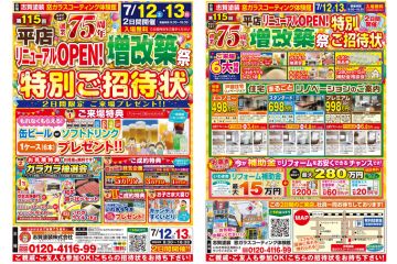 第115回 平店OPEN増改築祭 ■日時■ 2025年7月12日(土)13日(日) 9:30~16:45 ■会場■ 〒970-8053 福島県いわき市平正月町3−3 サンライズビル 1F ----------------- [お電話からのご予約] フリーダイヤル:0120-168-375 ホームページでご予約はこちらから LINEやオンラインでのお問合せも受け付けております。 LINEでご相談はこちらから オンライン相談はこちらから ----------------- 住まいが良くなれば暮らしが良くなり、暮らしが良くなれば毎日が楽しくなります♪ お家のお困り事をリフォームで解消し、楽しく快適なお家時間を過ごしましょう。 ショールームで実際に商品を見ながら相談ができるこの機会をぜひご活用ください。 WEBやカタログからも情報を集めることができますが、実物を見るとリフォーム後のイメージがぐっと膨らみます。 リフォーム志賀塗装はご相談無料、お見積り、点検も無料で対応いたします。 まずはお話だけでも大歓迎です! 当日はみなさまへの日頃の感謝をこめて、嬉しい特典盛りだくさん、楽しんでいただける企画もご準備しております。 お気軽にご来場ください! ご希望のお時間にご相談いただけるよう、事前にご予約いただくことをおすすめしております。 [お電話からのご予約] フリーダイヤル:0120-168-375 ホームページでご予約はこちらから LINEやオンラインでのお問合せも受け付けております。 LINEでご相談はこちらから オンライン相談はこちらから ---------------