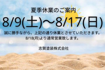第117回 外壁塗装・リフォーム祭 ■日時■ 2025年10月3日(金)4日(土)、5日(日) 10:00~16:45 ■会場■ クリナップいわきショールーム いわき市鹿島町御代字九反田51-5 ----------------- [お電話からのご予約] フリーダイヤル:0120-168-375 初めてホームページのフォームから 事前のご予約をいただいた方には QUOカード5,000円分プレゼント! ホームページでご予約はこちらから LINEやオンラインでのお問合せも受け付けております。 LINEでご相談はこちらから オンライン相談はこちらから ----------------- 住まいが良くなれば暮らしが良くなり、暮らしが良くなれば毎日が楽しくなります♪ お家のお困り事をリフォームで解消し、楽しく快適なお家時間を過ごしましょう。 ショールームで実際に商品を見ながら相談ができるこの機会をぜひご活用ください。 WEBやカタログからも情報を集めることができますが、実物を見るとリフォーム後のイメージがぐっと膨らみます。 リフォーム志賀塗装はご相談無料、お見積り、点検も無料で対応いたします。 まずはお話だけでも大歓迎です! 当日はみなさまへの日頃の感謝をこめて、嬉しい特典盛りだくさん、楽しんでいただける企画もご準備しております。 お気軽にご来場ください! ご希望のお時間にご相談いただけるよう、事前にご予約いただくことをおすすめしております。 [お電話からのご予約] フリーダイヤル:0120-168-375 初めてホームページのフォームから 事前のご予約をいただいた方には QUOカード5,000円分プレゼント! ホームページでご予約はこちらから LINEやオンラインでのお問合せも受け付けております。 LINEでご相談はこちらから オンライン相談はこちらから ---------------
