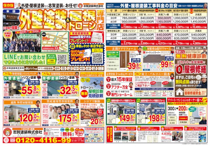 志賀塗装だけの特別価格やリフォームに使用できる補助金のお知らせなど、お得な最新情報満載です!