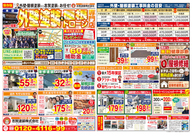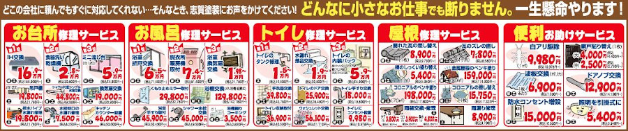 リフォーム志賀塗装だけの特別価格やリフォームに使用できる補助金のお知らせなど、お得な最新情報満載です!