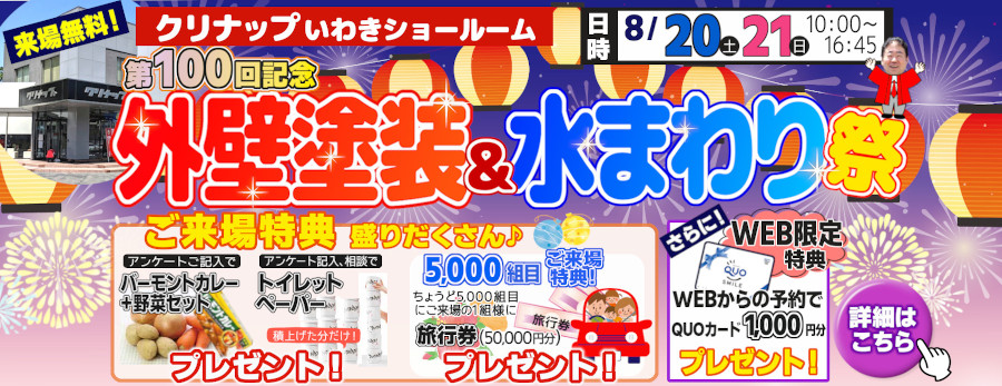 みなさまのおかげで、「住まいの外壁塗装・水まわり祭」は100回目の開催を迎えることができました!