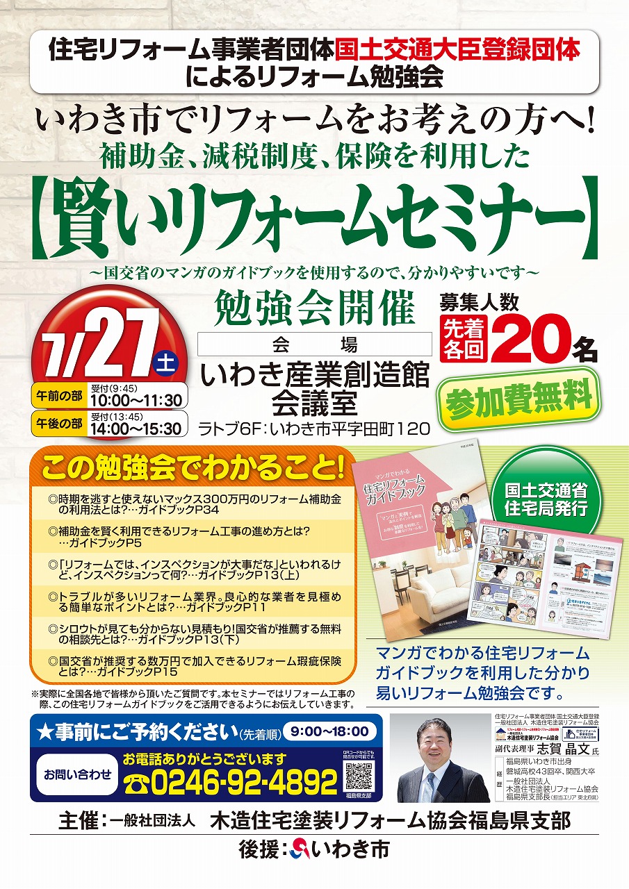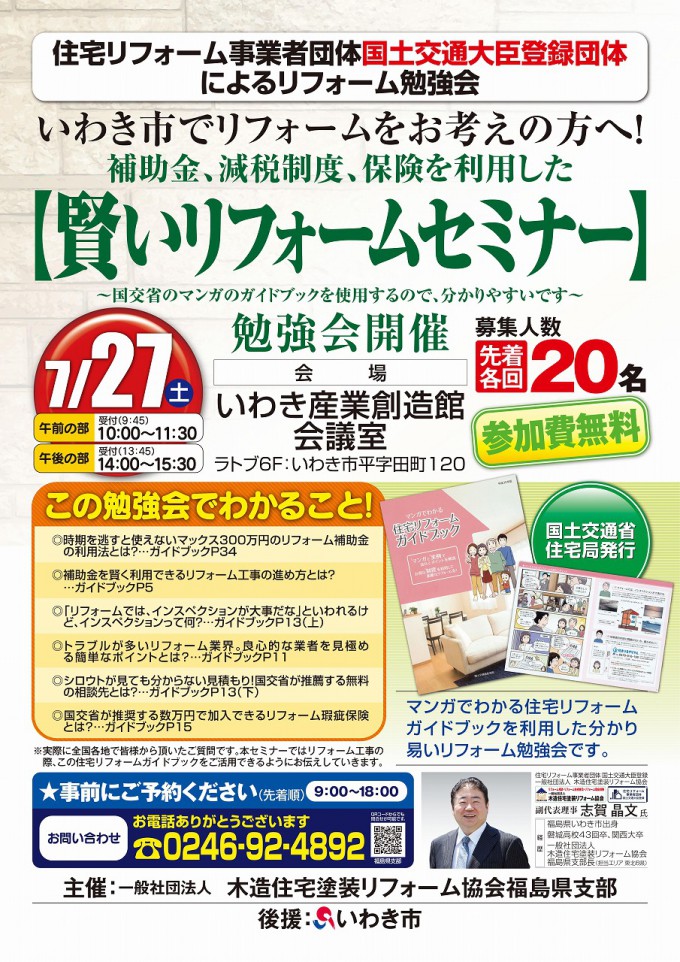 補助金、減税制度、保険を利用した【賢いリフォームセミナー】を開催いたします。