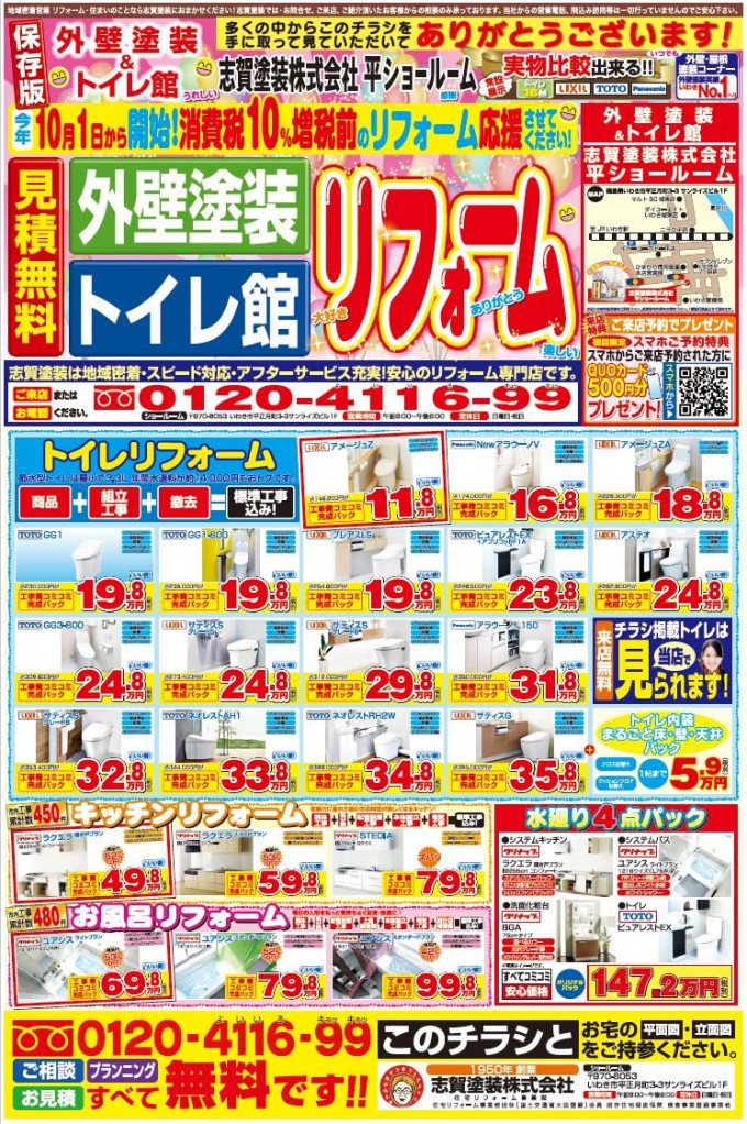 平ショールームにてチラシ掲載トイレをご覧いただけます。