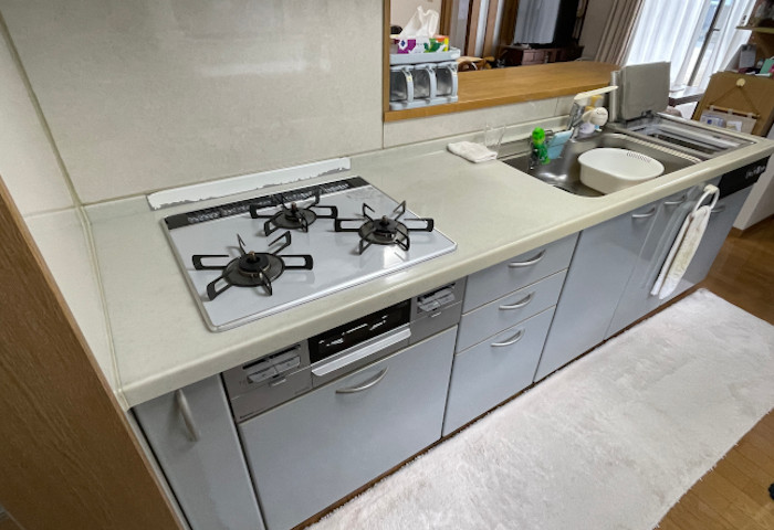 既存の設備を確認させていただいたところ部品が古く食洗器のみの交換対応が難しかった為、キッチン交換のご提案をさせていただきました。