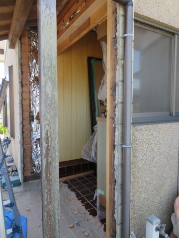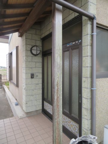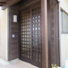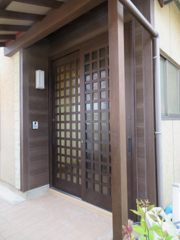 N様この度はお問い合わせいただきありがとうございました。家の築年数も経っているので、周りとの調和のとれた玄関を選定させて頂きました。周りの外壁だけでなく、タイルの張替え・木部の塗装をしたことで、より玄関が映えましたね!