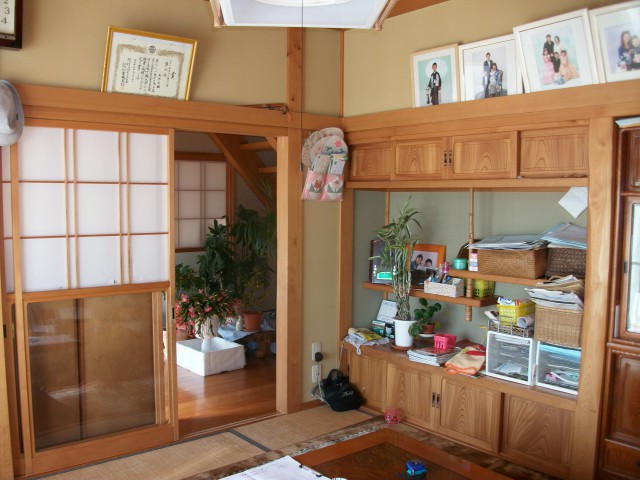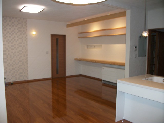 和室、台所をLDKにしたリビング側です。落ち着いた雰囲気で家族団らんを楽しんでいただきたいです。