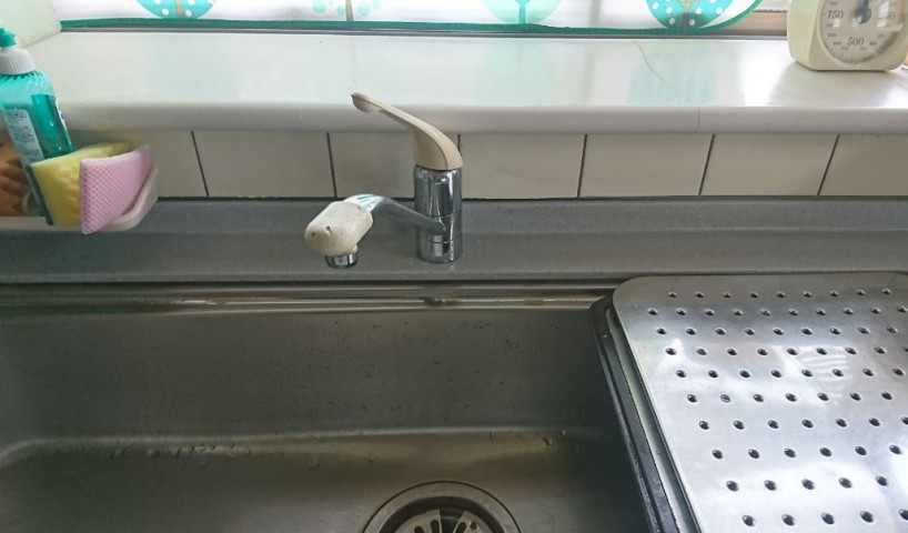 使い勝手が悪くなってきた事でのご相談でしたが、こちらのお客様の水栓はレバーを下げると水が出るタイプでした。