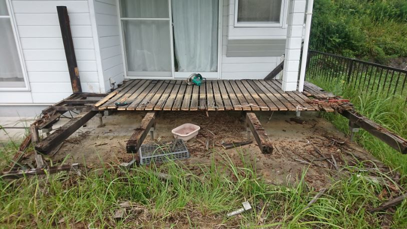 木製のウッドデッキは木部用の塗料を塗る事で防水効果だけでなく腐食や防虫効果があるのですが、手入れを怠ってしまうとどんどん木部に水が染み込み虫が寄ってきてしまいます。
