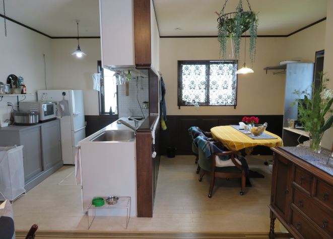 もともとは対面型のキッチンでしたが、もっと空間を「広く」「オシャレに」使いたいということで今回リフォームさせて頂きました。奥様のこだわりも随所に取り入れ、キッチンの取手や照明、家具なども細部にわたりオシャレな空間に仕上げました。