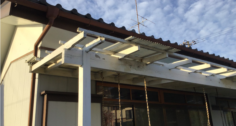 現地調査にお伺いしたところ、テラスの屋根がだいぶ傷んでおり、ご近所にも住宅が多いエリアなので、破片が飛んでいかないかというご心配を早く解決するべきだと感じました。