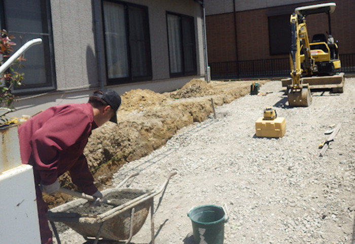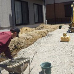 駐車場にする場所は水害時でもできる限り車の安全を確保できるようにというご希望をいただき、志賀塗装の担当アドバイザー藤田よりお庭のリフォームをご提案させていただきました。