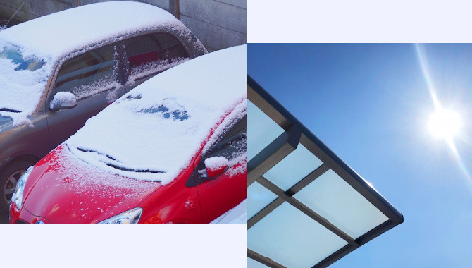 冬場には霜が降りてきてもカーポートの屋根が防いでくれるので、フロントガラスの霜を取り除く手間がなくなります。