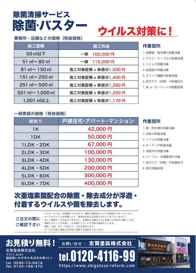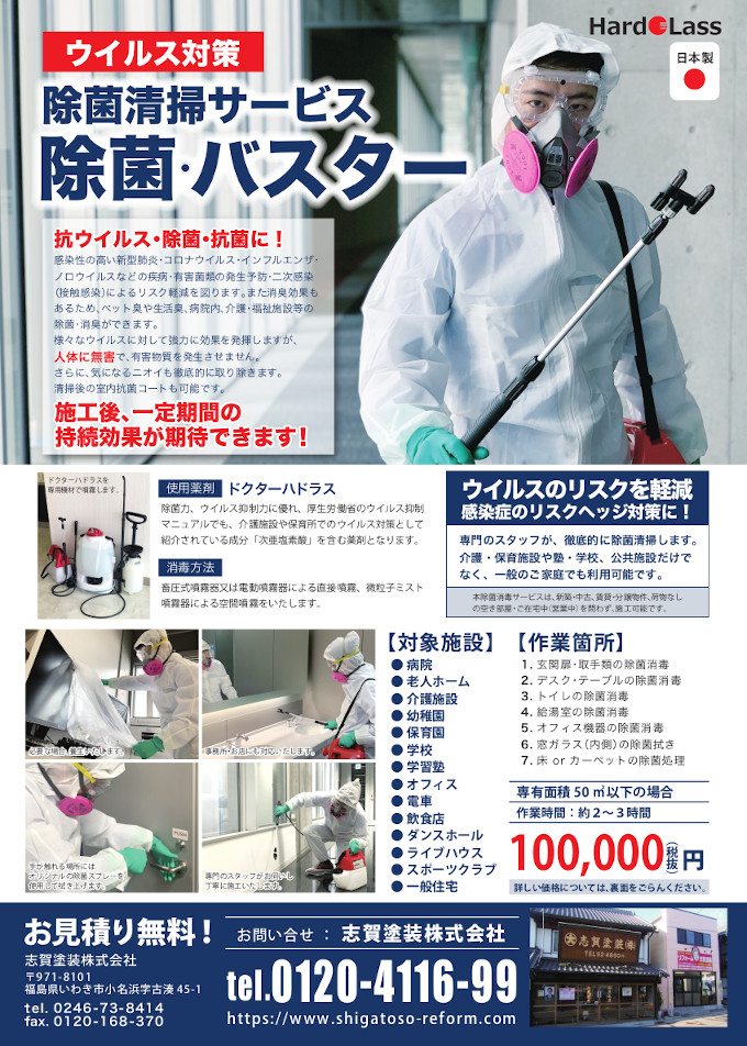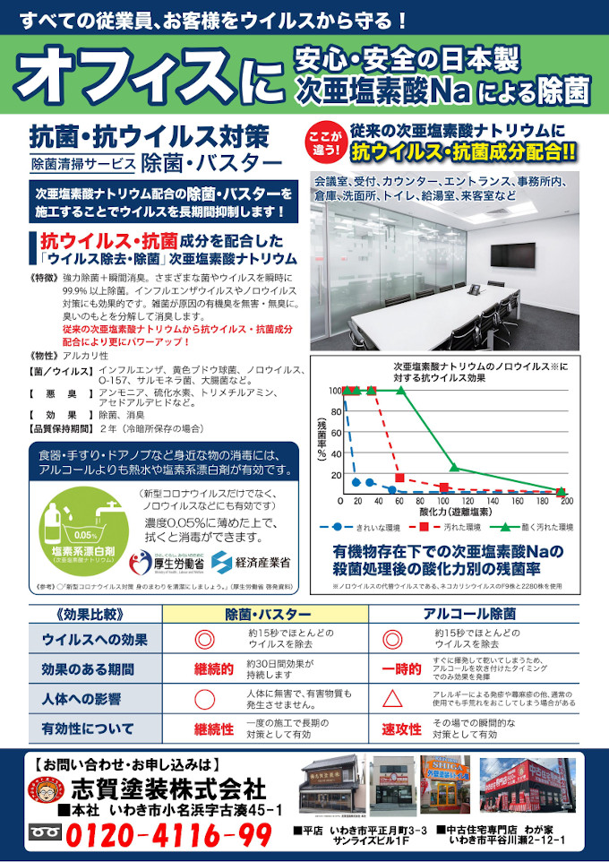 現在も感染症対策は求められています。 塗装業界でもさまざまな抗菌対策塗料はこれまでも存在していましたが、今回抗菌作業をこのいわき市を中心に開始いたします。