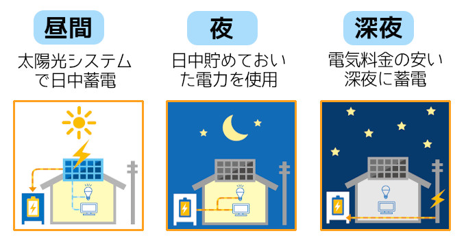 蓄えておいた電気を必要な時に使用することができる蓄電池。