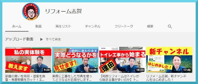 そこで今年からはリフォームのチャンネルを作り、キッチンやお風呂、トイレなどの水まわりや、内装、外構などリフォーム全般の動画も配信していくことにいたしました。