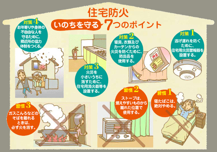 日頃から一人ひとりが防火への意識をもち、できることから対策をすることが大切です。