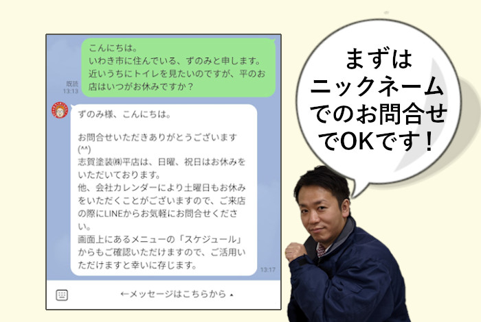 という方には、LINEで志賀塗装とお客様の個別トークルームもご利用いただけます。