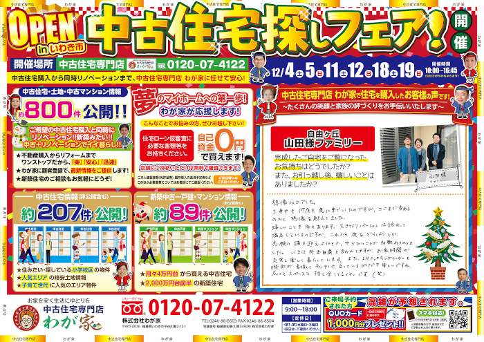 わが家で中古住宅購入+リノベーションをしていただいたお客様の感想集もございます。