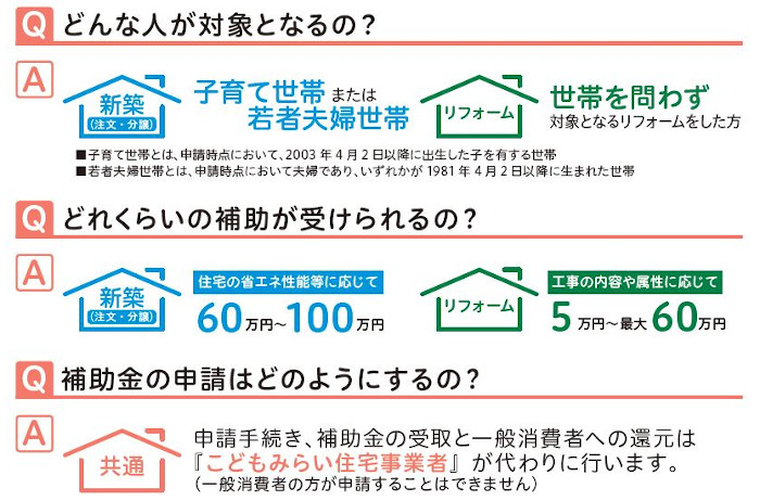 こどもみらい住宅支援事業は、「リフォーム」においては子育て世代だけではなく全ての世帯が対象です。