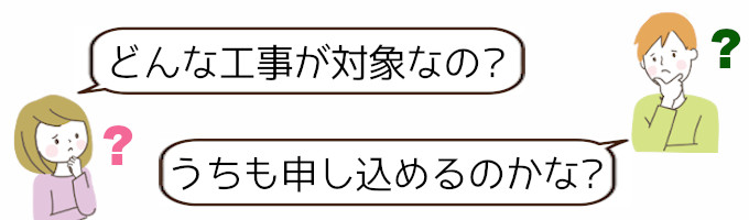 申請条件を満たしていれば、対象となる住宅で対象となる工事をする際に一部補助を受けることができます。