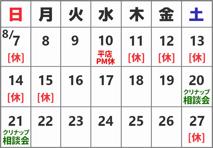 ※平店のみ8月10日午後よりお休みとさせていただきます。