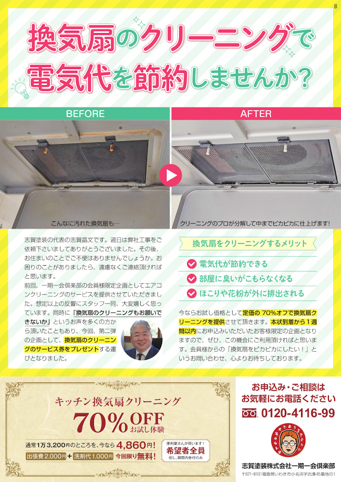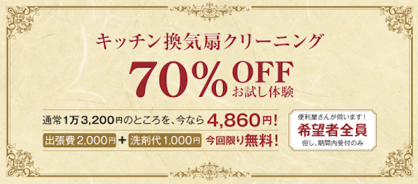 一期一会倶楽部会員様限定で、キッチン換気扇クリーニング作業を70%OFFでご利用いただける期間限定企画をご用意いたしました!