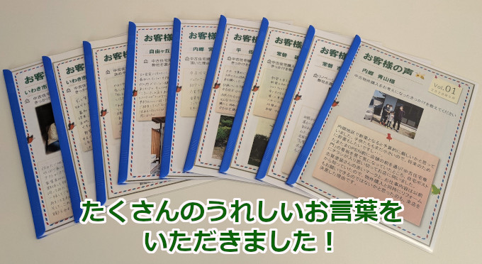 店頭ではわが家で中古住宅購入+リノベーションをしていただいたお客様の感想集をご覧いただくことができます。